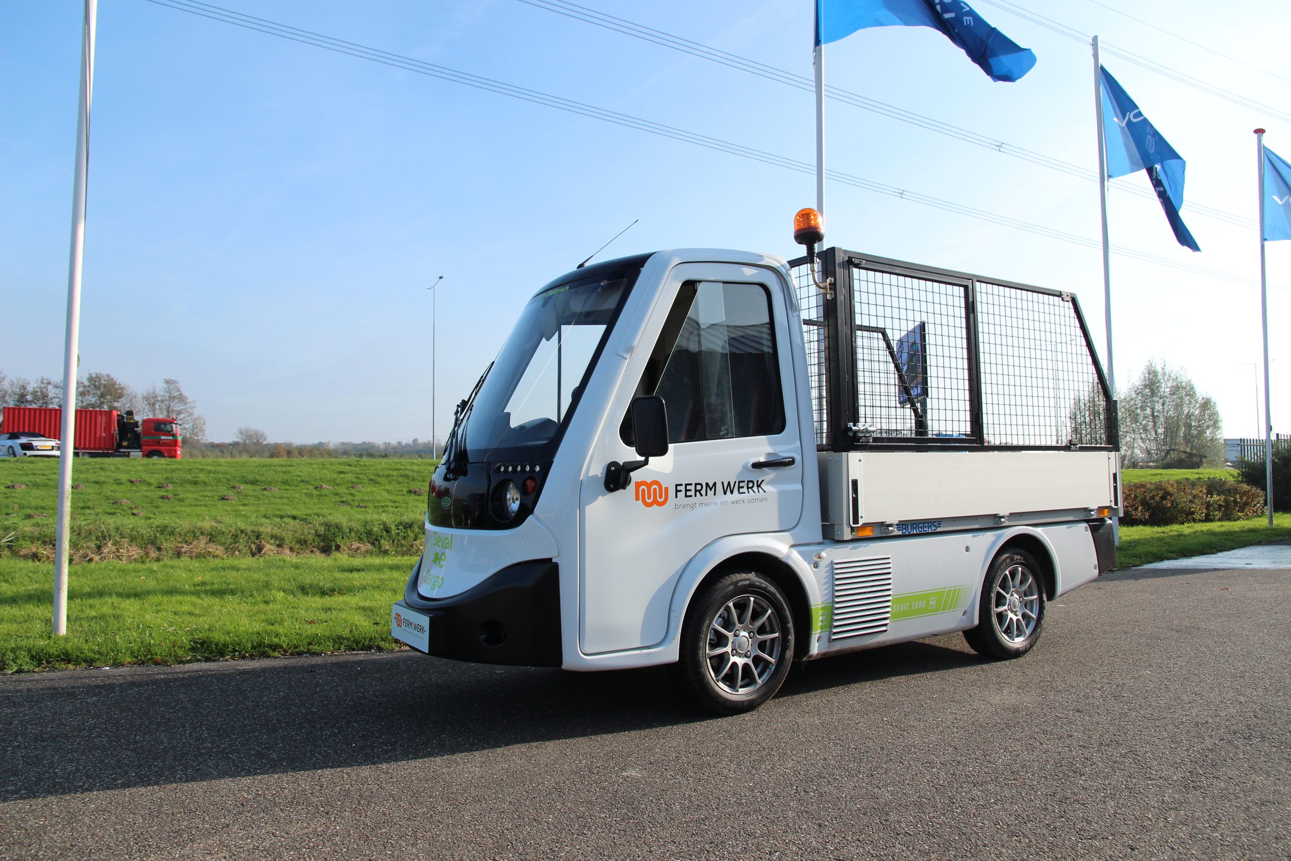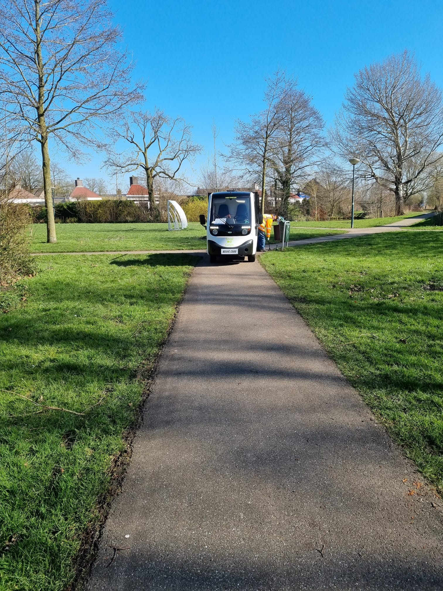 Het voertuig rechts rijdt momenteel in de gemeente Woerden, hier haalt het voertuig de prullenbakken leeg die in parken staan. Het voertuig kan door zijn smalle afmetingen (1.4m breed) makkelijk over het fietspad zonder anderen tot last te zijn.